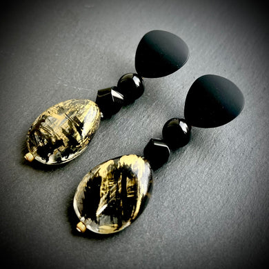 透け感のあるブラックとゴールドのラウンドピアス p-31
