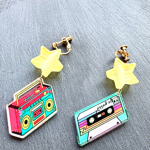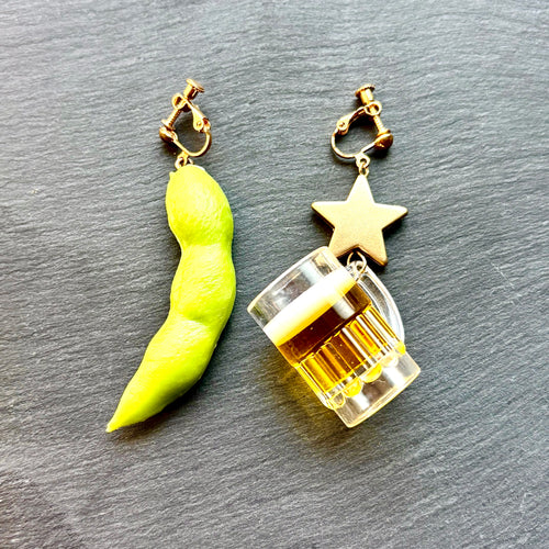 チョコレート&ヌーディーカラーの大ぶりイヤリング e-60