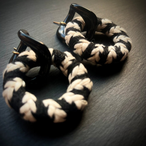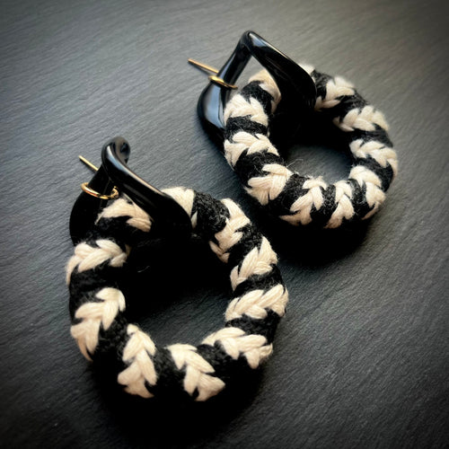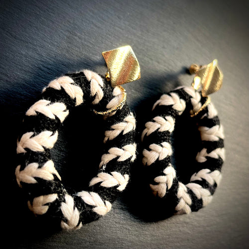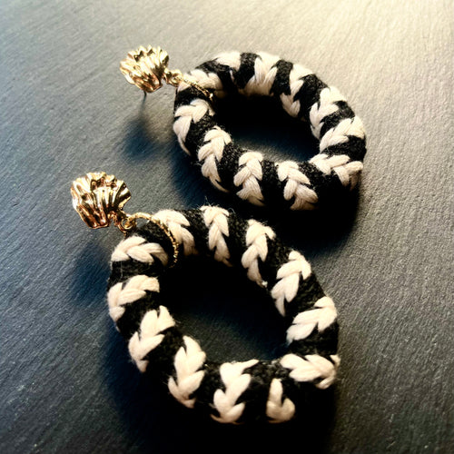 p-210 シェルと刺繡糸ブラックピアス p-210