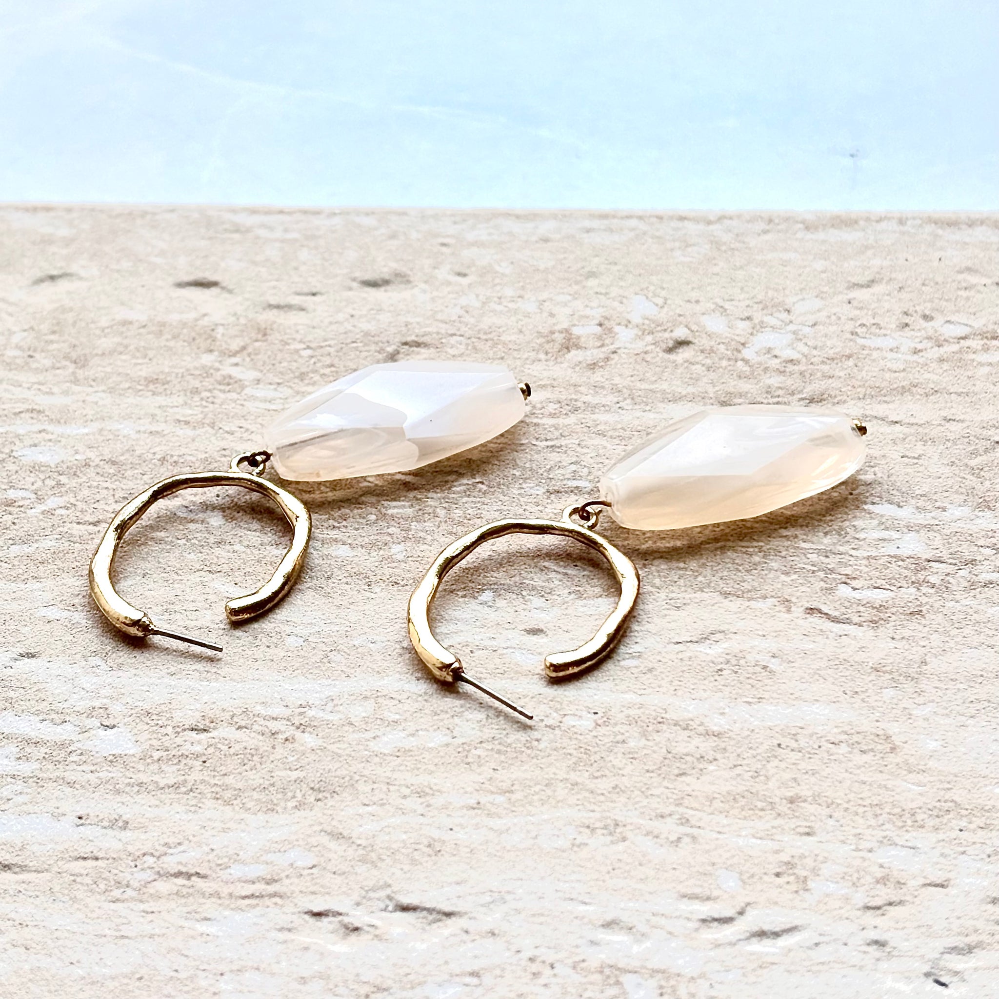 大ぶりなヌーディーカラーのストーン風パーツ。