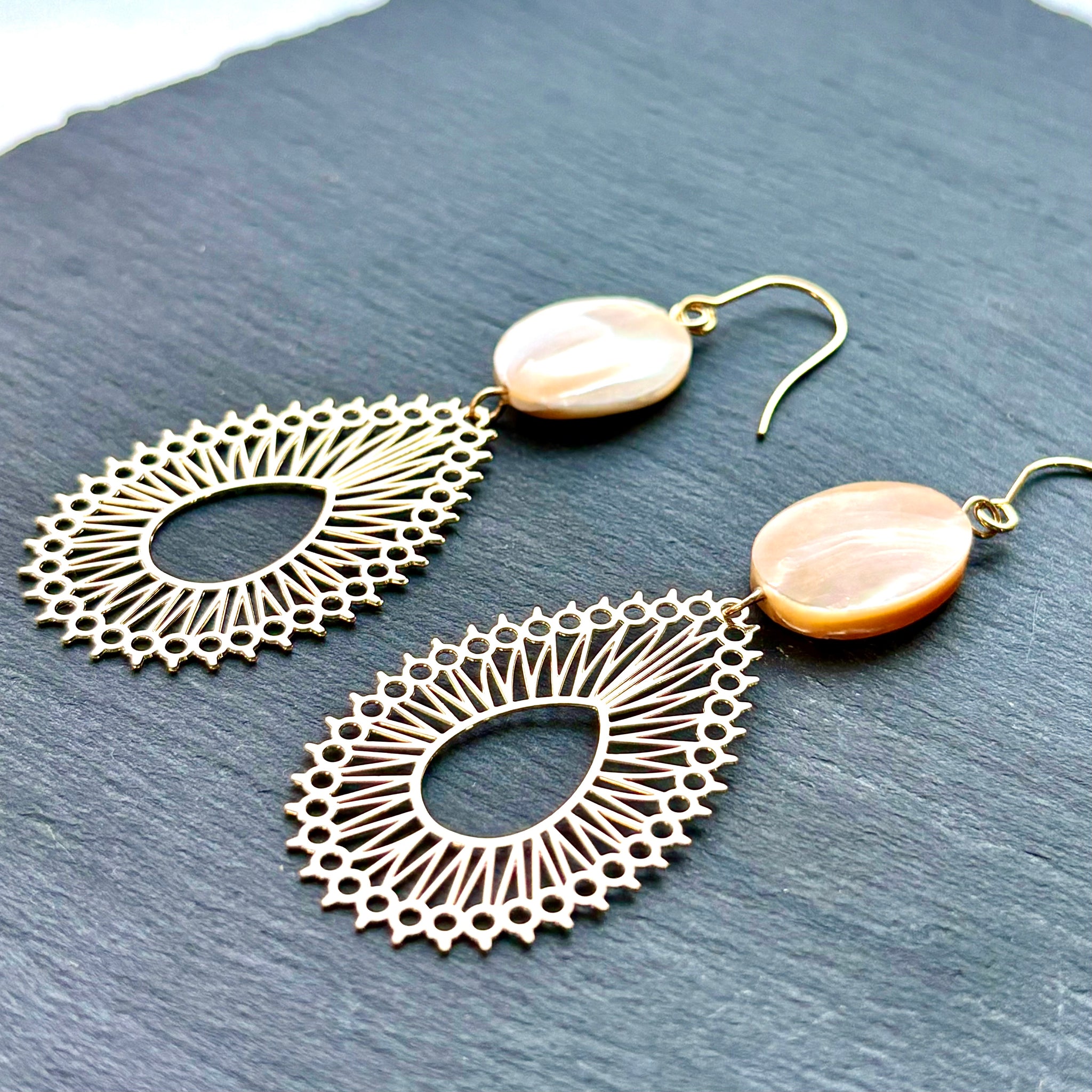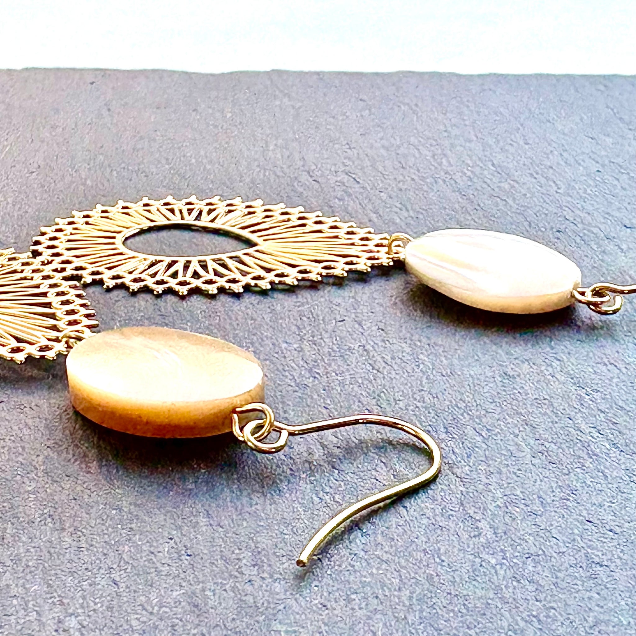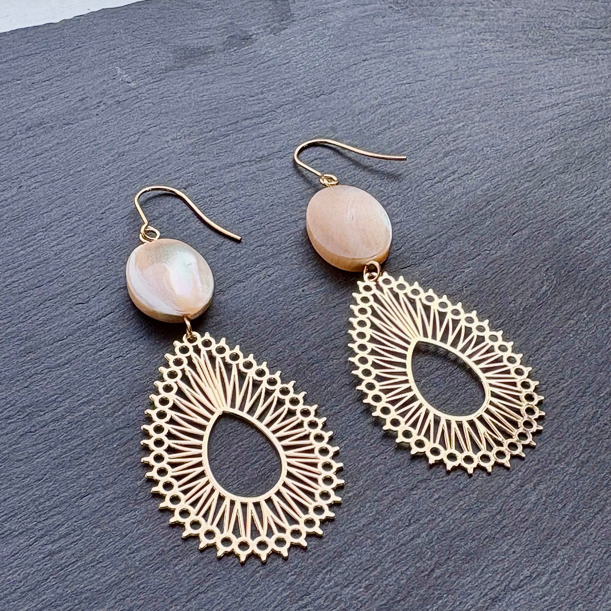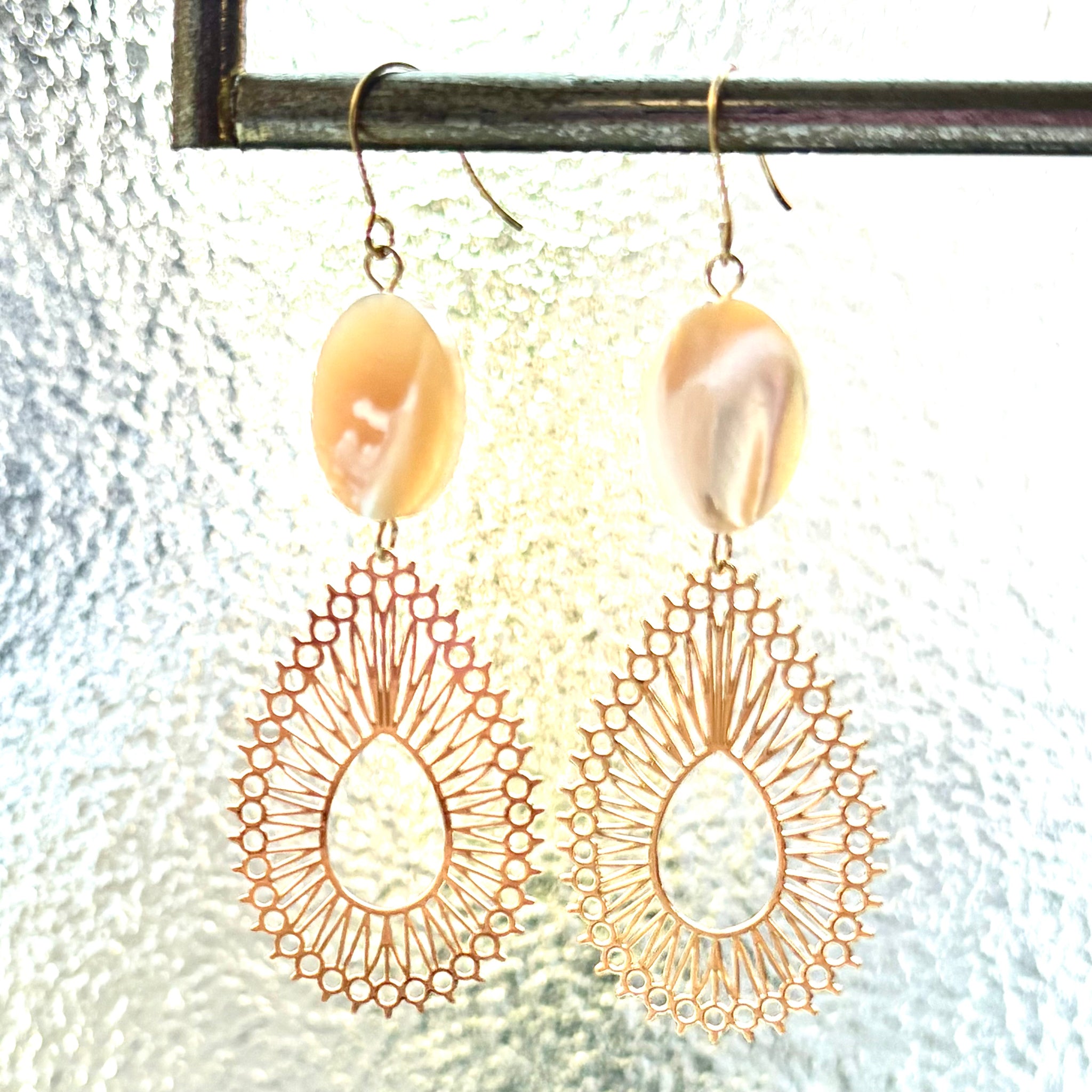 • 画像をギャラリービューアに読み込む, シェルに大人なゴールド透かしのピアス p-128