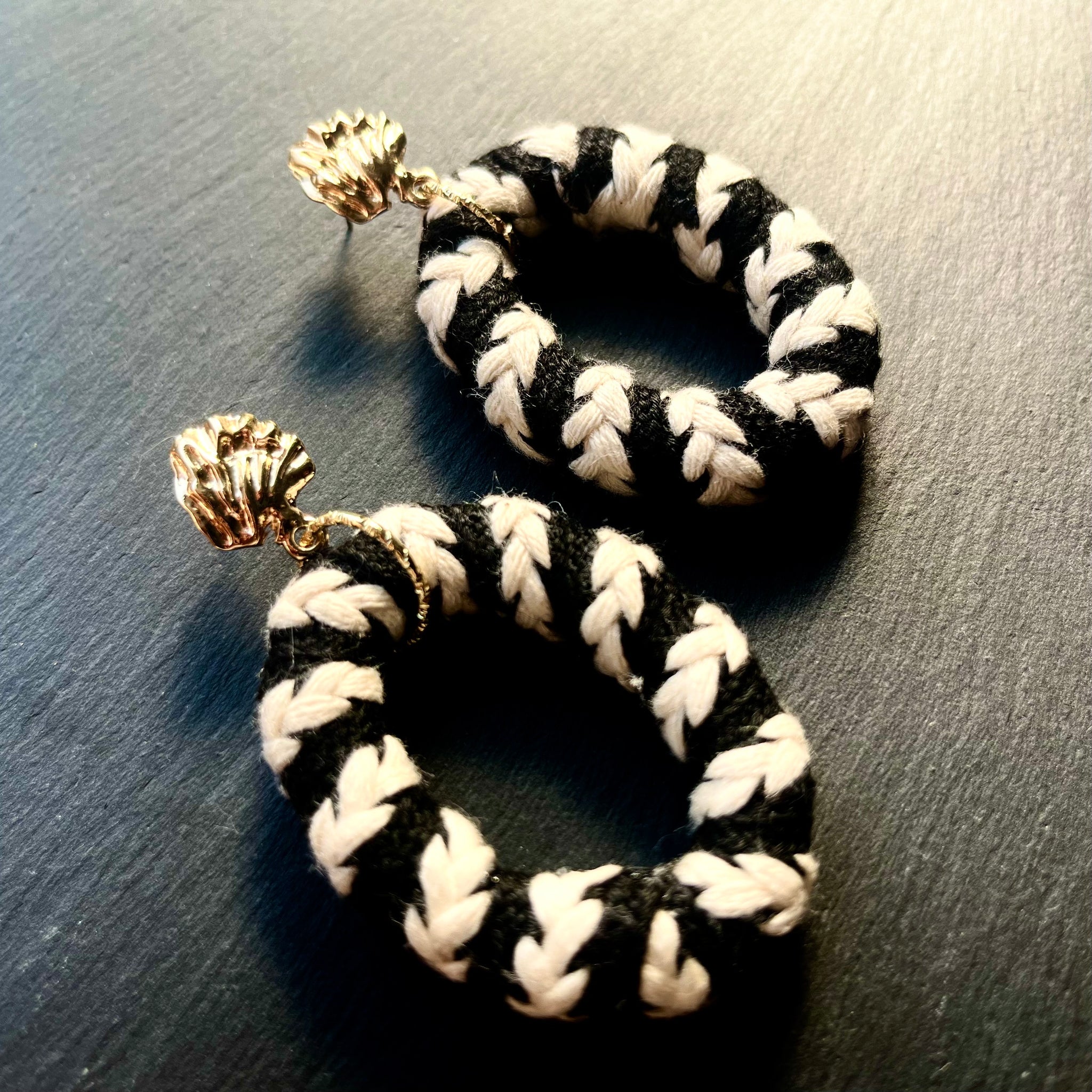 シンプルなシャツ、コートにつけると映えます。個性的な主役級イヤリングです。